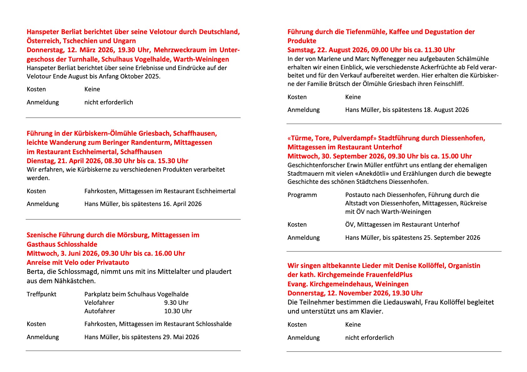 Unsere Aktivitäten 2026